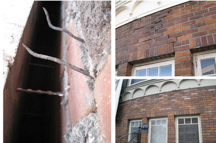 The deterioration of the façade included corroded wall ties, failed lintels, cracked, bowed and unstable brickwork.